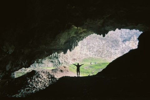 ▶早起前往藏在深山里的天然秘境:大圣之眼,这里因洞口与水中倒影形似齐天大圣的怒目而得名。部分路段需手脚并用。