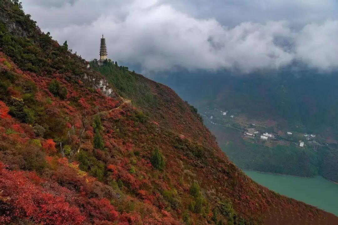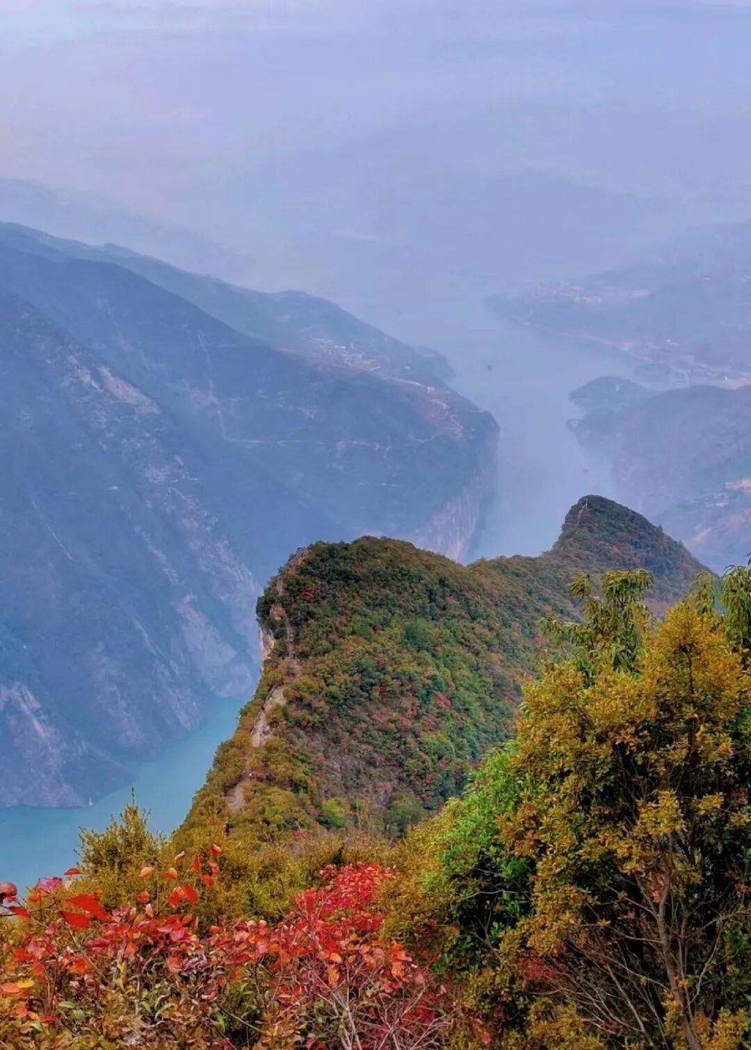 三峡之巅:以上帝视角观红叶