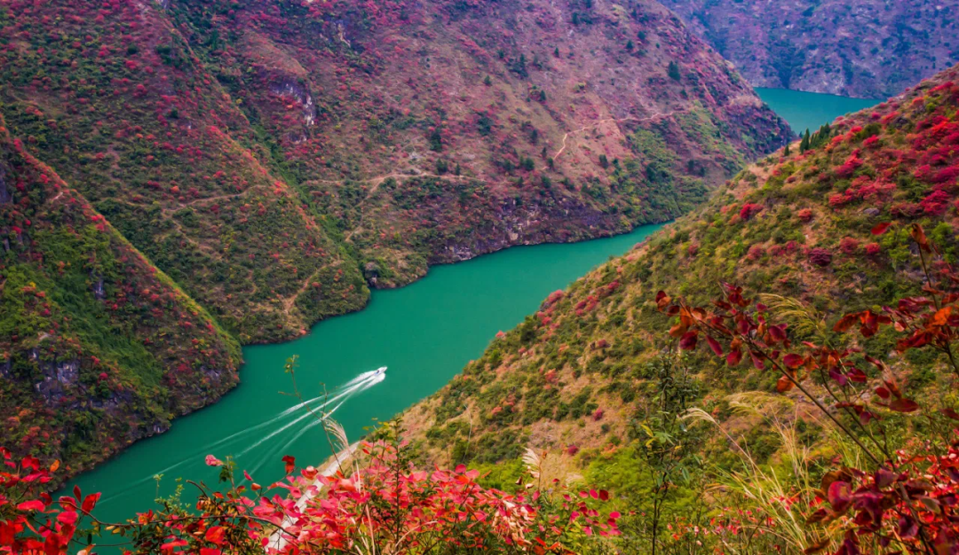 ✅三峡红叶正当时,半江瑟瑟正当红