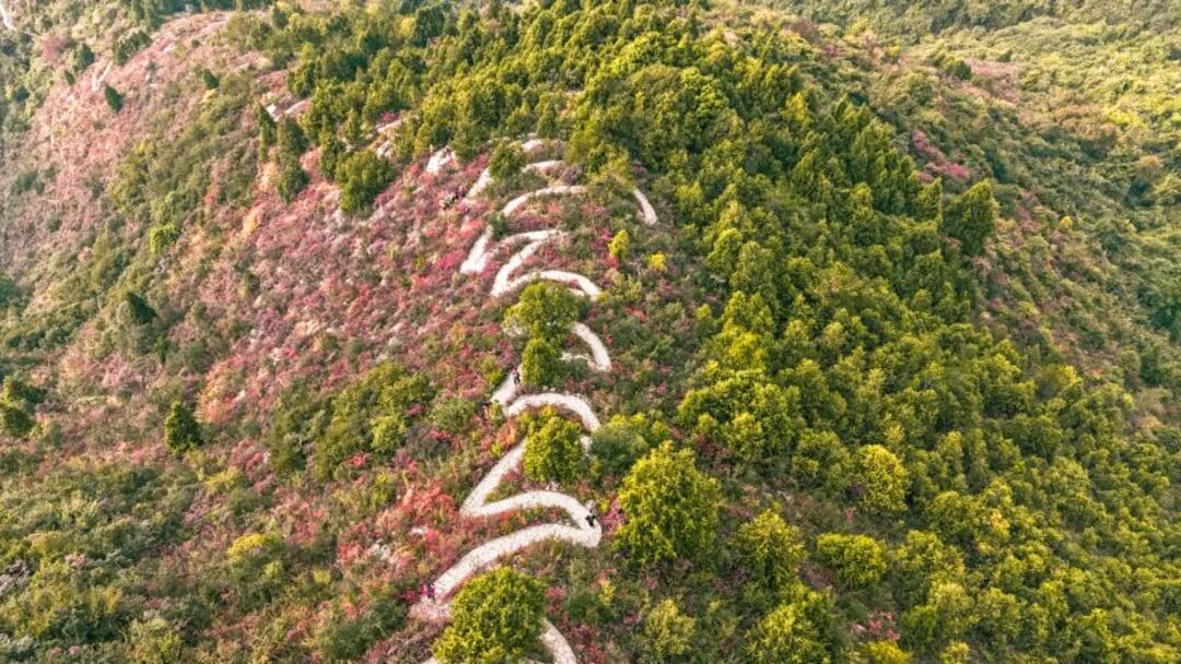 危石才通鸟道,空山更有人家。桃源定在深处,涧水浮来落花。“危石鸟道”指的是坳口至三峡之巅玻璃观景台的一段步道,全长约6.84公里,应是就地取材铺装而成,据说是2017年6月开工,2017年12月完工。此悬崖步道,依山凿壁而建,部分路段仅容一人侧身通过秋季行走其间,红叶触及,脚下长江奔流,惊险与美景并存。