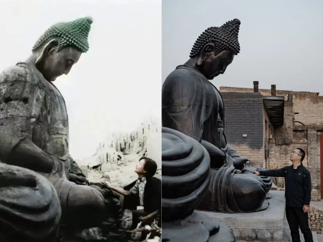 1934年,林徽因与梁思成开展晋汾古建筑预查,远眺到药师多宝塔 益“一塔秀挺,楼阁巍然,殿瓦琉璃,辉映闪烁夕阳中”,在站到塔下时发现了3尊铁佛,林徽因曾说“斜阳一瞥,奇趣动人”神性的慈悲,人性的光辉赏,她与铁佛对视的一幕成为了绝唱也成为了来这里的“最佳打卡点位”。