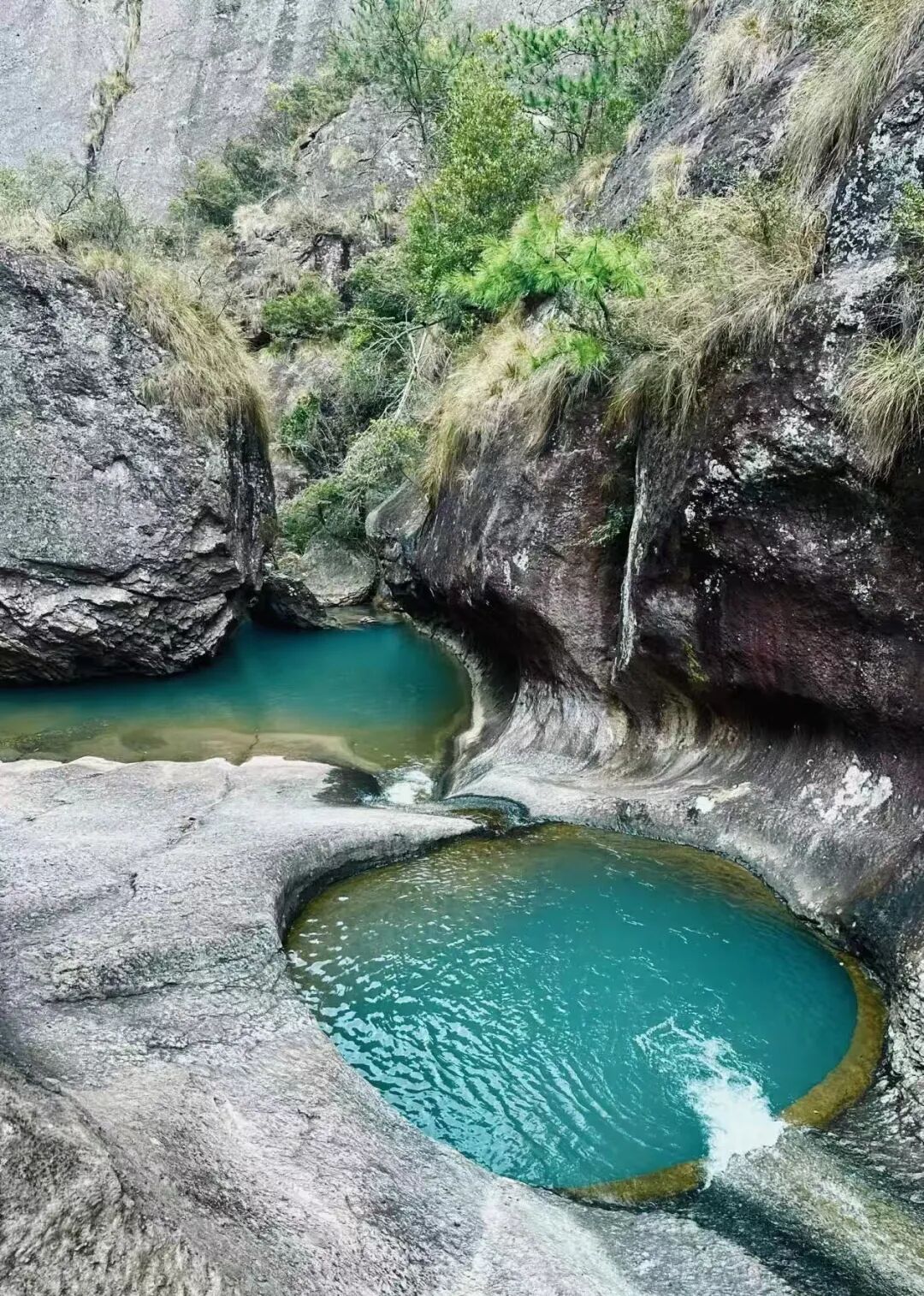 双龙谷:因谷中有白龙潭和乌龙潭,故称双龙谷。峡谷穿越之趣,在于有着“山穷水复疑无路,柳暗花明又一村”的未知变化,也在于穿越的方式多样,峡谷内有铁链、绳索等辅助设施,适合徒步和攀岩爱好者挑战。可徒步穿越,可溯溪而上,可依着铁索攀爬,又需不时钻洞而过,有时又需克服一定的险阻爬上巨石,中途又可闲坐小憩。这是一条趣味攀爬峡谷野线,赏山野奇峰异石美景。