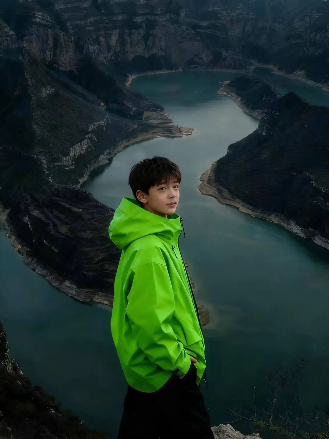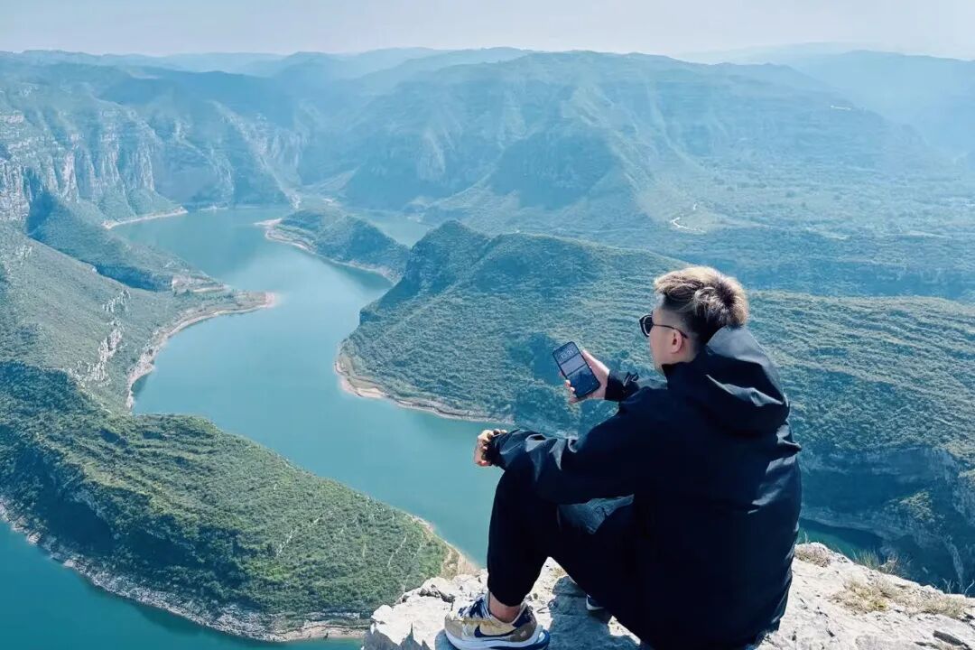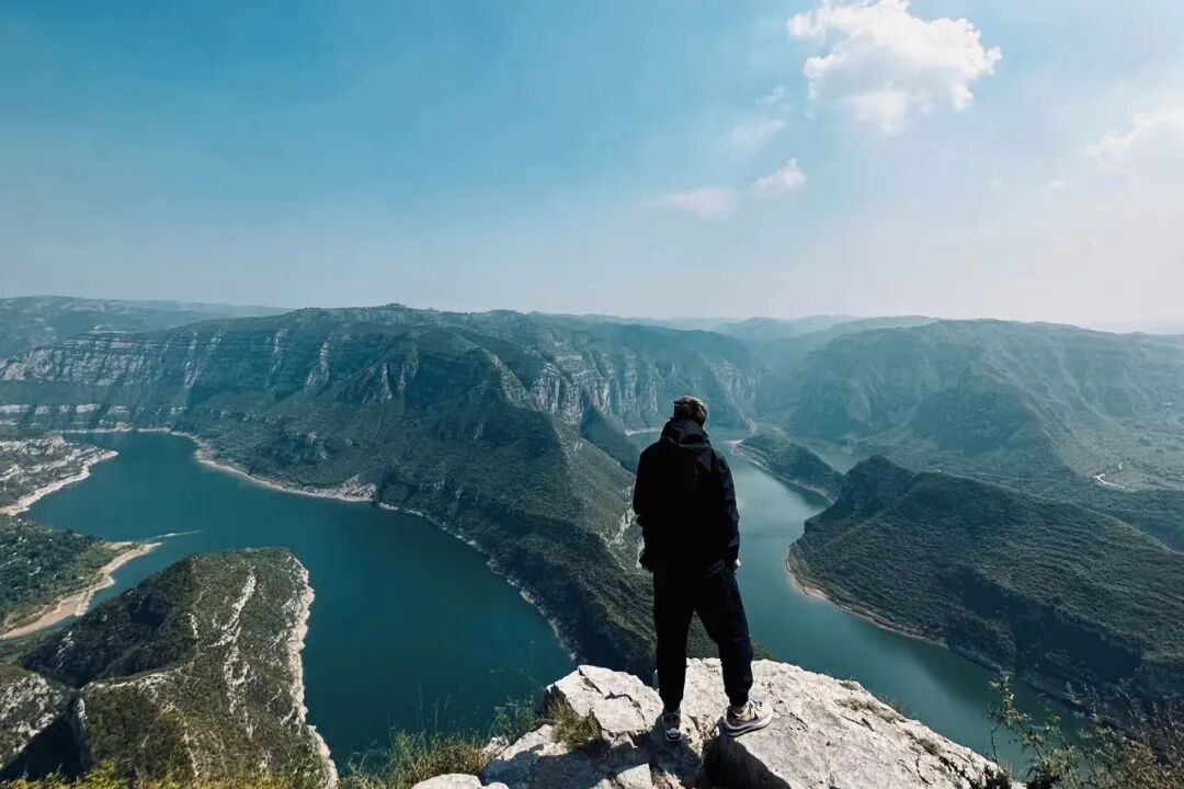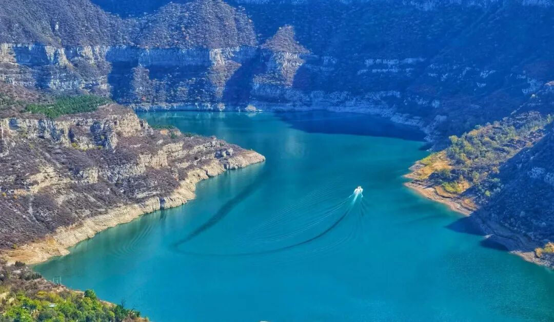 站在山上向山下汾河望去,碧水凝脂,峡谷神奇