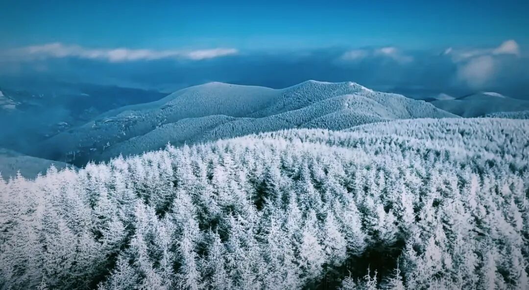 每颗树都挂满了雪霜