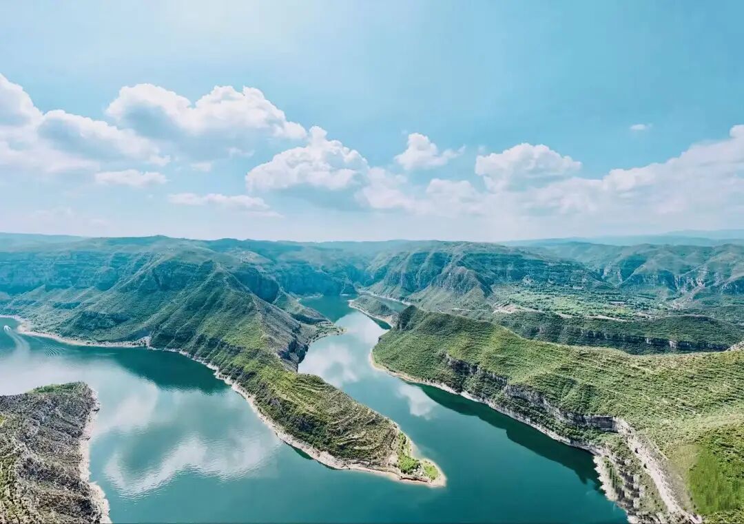 站在山上向山下汾河望去,碧水凝脂,峡谷神奇