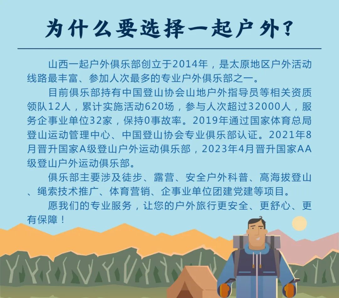 身未动,心已远。践行安全、科学、环保户外,山西专业户外运动服务机构