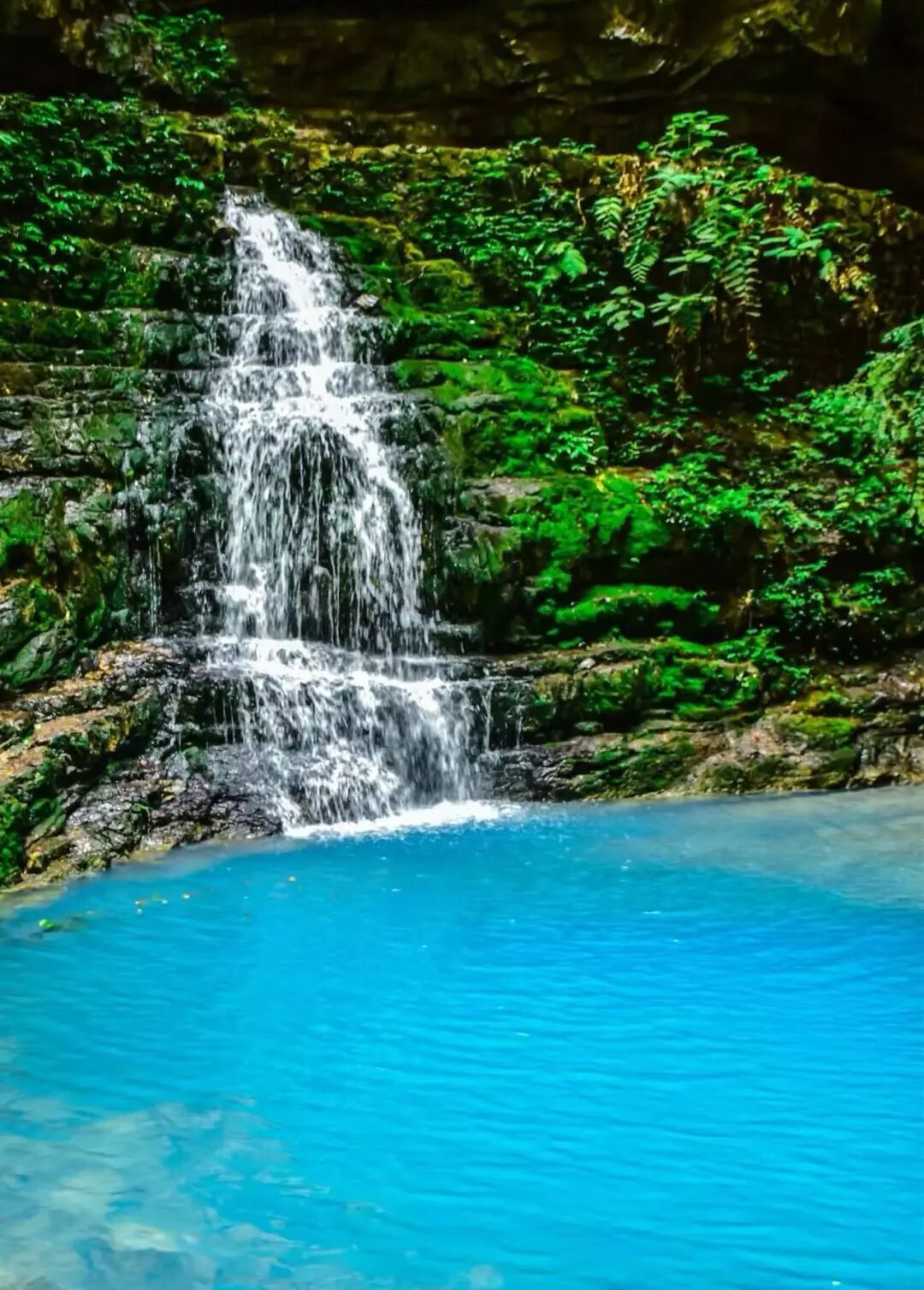 这里有独特的喀斯特地貌,造就了多姿多彩断崖、瀑布和洞穴、梦幻的溪流,犹如上帝打翻的Mojito。沿着山谷,溯溪而上,飞瀑流云、水月洞天,如同仙女出浴的长发和掉落山间的蓝色眼泪,让人无不感叹大自然的奇妙与美好。一路上被山风亲吻,被树叶抚摸,被阳光浸染,被溪流拨动心弦....在猴子沟可以完全享受着来自大自然的偏爱。
