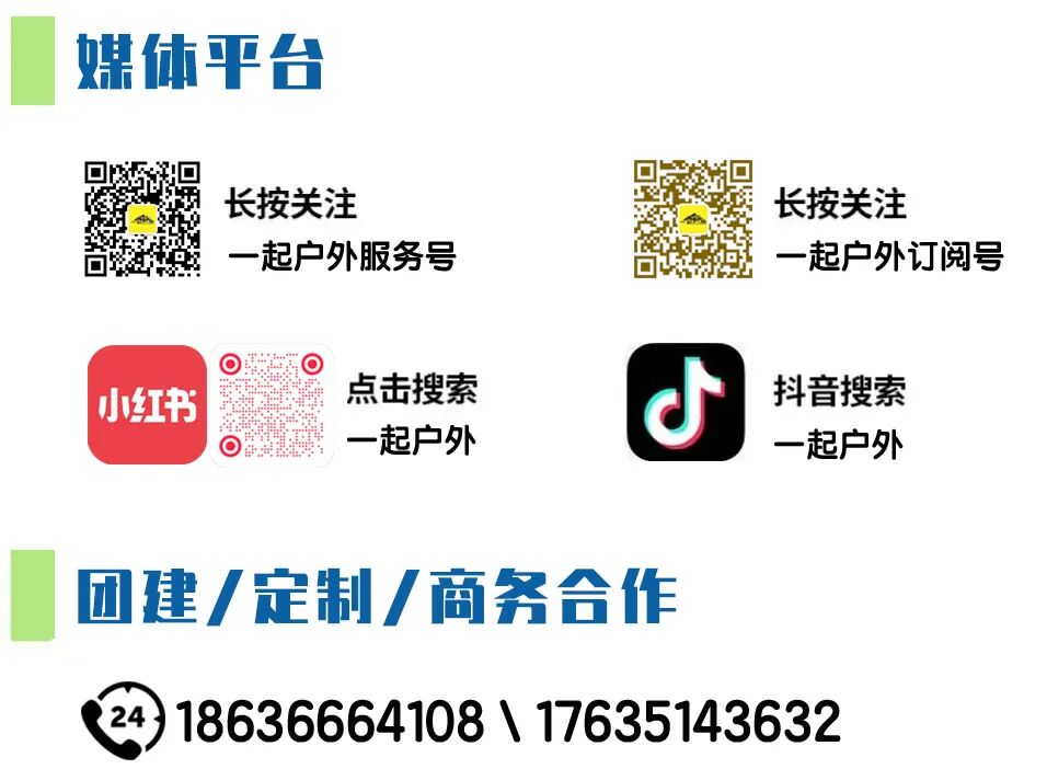 8、行程中摄影作为增值服务,领队拍摄的照片、视频等素材,版权归一起户外所有。上述素材一起户外可能用于商业使用(如活动招募等商业行为),肖像权所有人不得追索侵权责任!此外,一起户外或肖像权所有人以外第三人如需将上述素材用于商业用途,请与我们联系获取授权,否则将追究法律责任。
