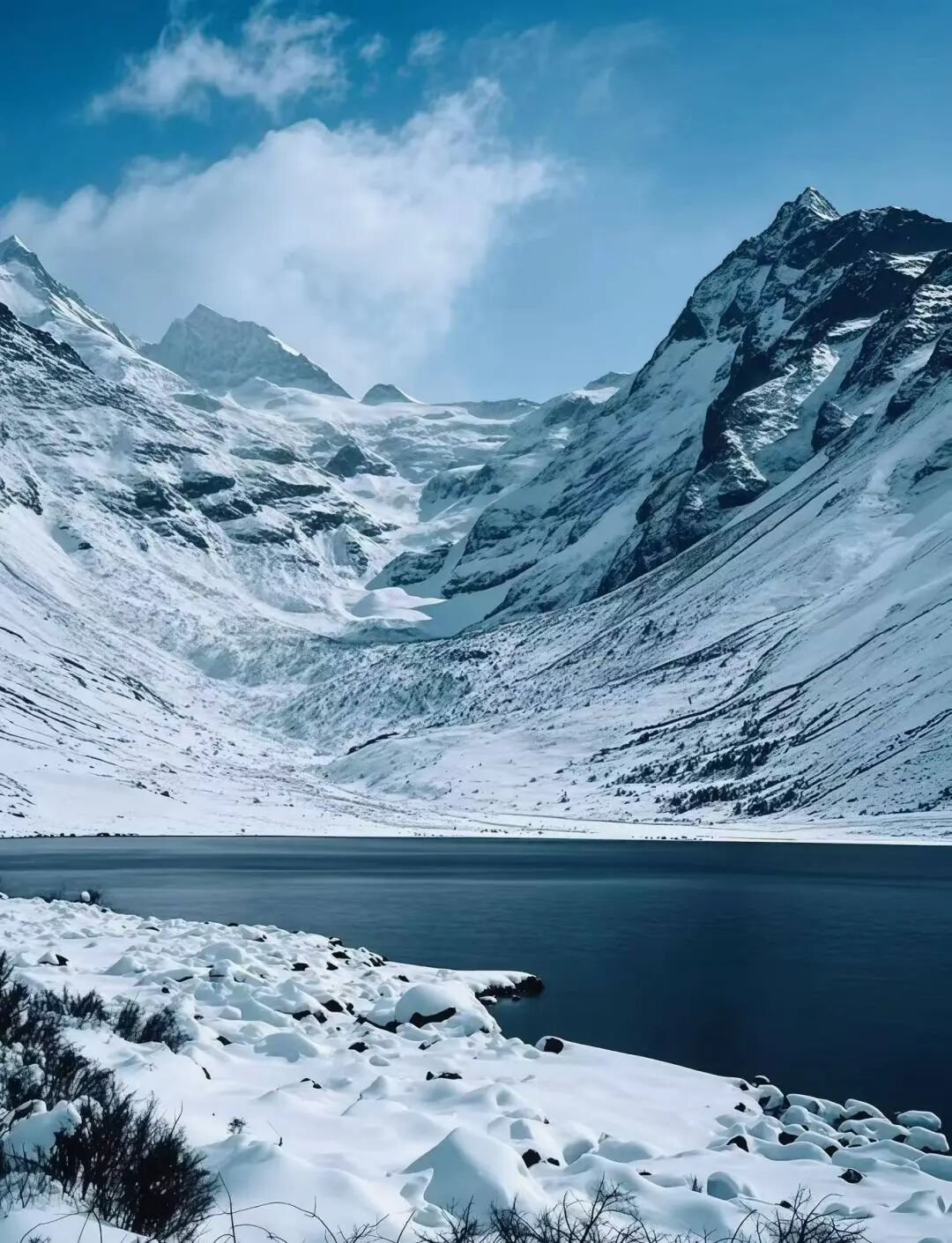两侧皆是连绵雪山环绕,视野开阔到震撼