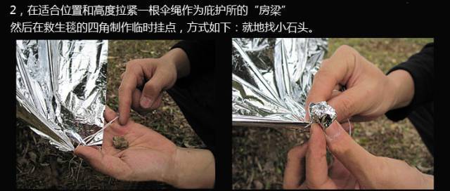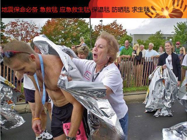 另外,急救毯在户外还有其他的功能,譬如,可用作反射膜,向空中或搜救人员发出定位信号。